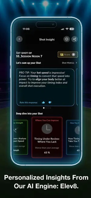 Paired with the str8bat™ sensor, the app transforms your bat into a precision instrument, capturing every detail of your movement and translating it into clear, actionable intelligence.